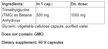 Съставки: Триметилглицин (TMG) (като безводен бетаин)