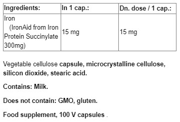 Съставки: Желязо [от IronAid® Iron Protein Succinylate (300 mg)]