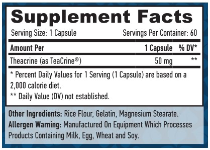 Съставки: теакрин (като TheaCrine) 50 мг. в доза