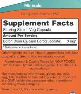 Boron от NOW представлява ефективен източник на бор, който е изключително важен за поддържането на здравината на костите. Той улеснява усвояването на минерали като калций и магнезий, които са от съществено значение за костната плътност и здраве. Освен това, борът спомага за поддържането на хормоналния баланс в организма.
