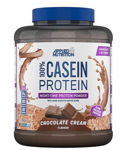 100% Casein от Applied Nutrition е казеинов протеин, който е подходящ за всеки, който иска да презарежда мускулите си по време на сън, когато не е подходящо да се консумират храни и напитки. 100% Casein се усвоява бавно за продължителен период от време, като по този начин снабдява мускулите с аминокиселините, необходими за синтеза на мускулна тъкан, улеснявайки възстановяването и растежа.