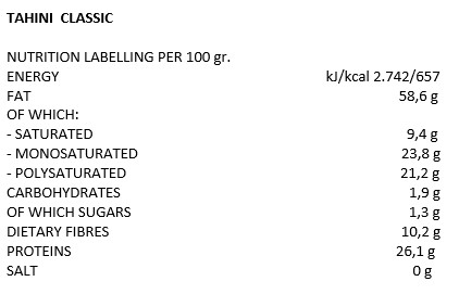 Tahini Classic от Kapetanios е изработен от най-фините печени, олющени сусамови семена, смлени на ръка до съвършенство, за да запазят естествения си аромат и здравословни свойства. Сусамовите семена са мощен източник на хранителни вещества, осигуряващи незаменими мастни киселини, които поддържат здравето на сърцето, а също така са чудесен източник на жизненоважни минерали като цинк и магнезий.