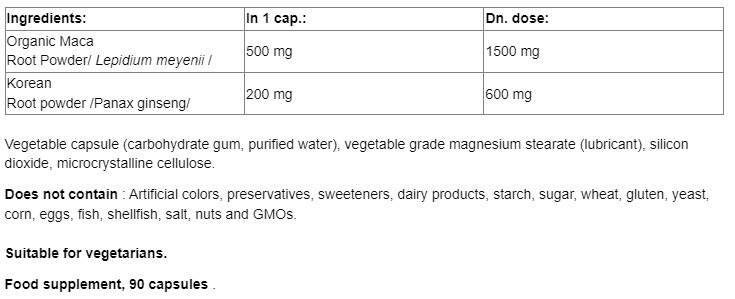 Съставки: Екстракт от Мака, екстракт от корейски женшен
