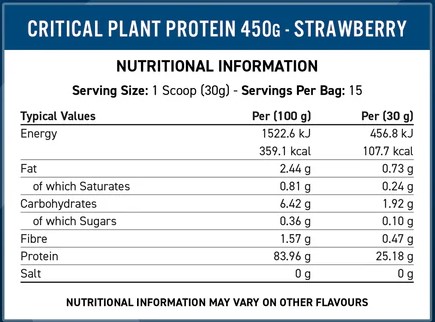 Critical Plant Protein представлява отличен избор за тези, които желаят да повишат приема си на протеини. Обогатен с високо съдържание на разклонена верига аминокиселини (BCAA), като левцин, изолевцин и валин, този вид протеин може да подпомогне растежа и запазването на мускулната маса.