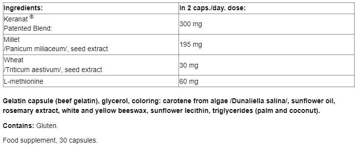 Съставки: каротин от водорасли, слънчогледово масло,екстракт от розмарин, бял и жълт пчелен восък, слънчогледов лецитин, триглицериди (палмови и кокосови).