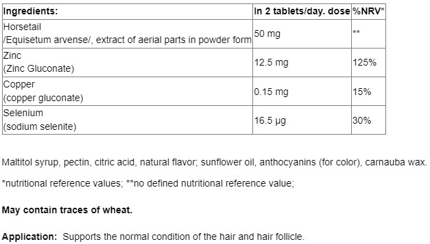 Съставки: Полски хвощ, цинк, мед, селен.