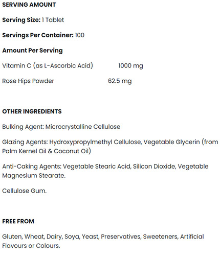 Vitamin C with Rose Hipsот Applied Nutrition е висококачествена хранителна добавка, предназначена да подпомогне имунната система и да осигури мощна антиоксидантна защита. Съдържайки 1000 mg витамин C във всяка таблетка, този продукт предлага оптимална доза от този жизненоважен витамин, който е добре известен със своите ползи за здравето.