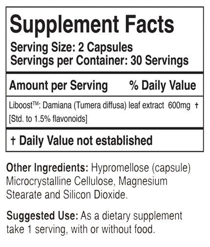 Liboos For Women е изцяло натурален и патентован екстракт от билката Дамиана. Наричана от ацтеките "любовна отвара", листата й имат дълга история на употреба, в южноамериканските медицински практики, като афродизиак и сексуален стимулант.