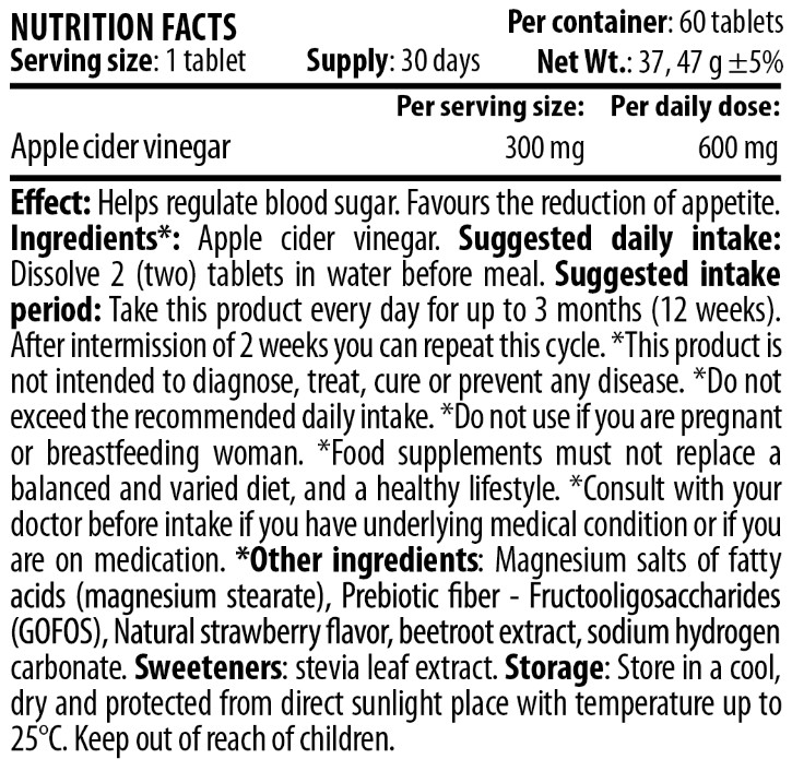 Коментари за CVETITA HERBAL Appetite Stop - Apple Cider Vinegar / 60 Dissolve in Water Tabs