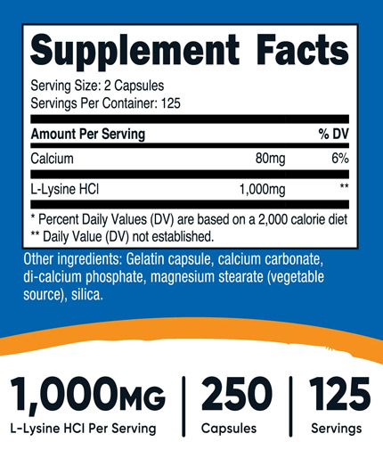 NUTRICOST L-Lysine 500 mg / 250 Caps