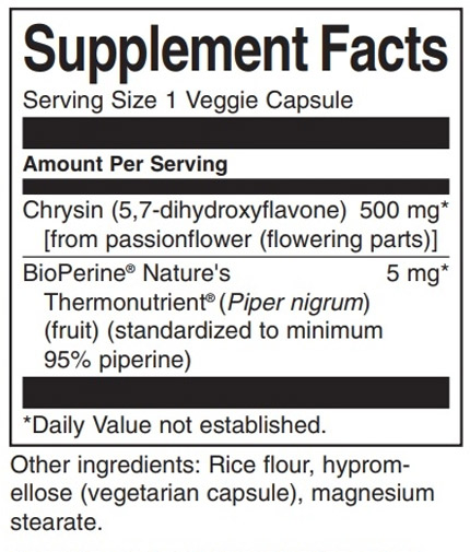 Chrysin Passionflower Extract обогатява вашето здраве и ви помага да водите по-пълноценен и активен живот. Тази добавка е идеална за тези, които искат да запазят своята жизненост и енергия, докато се наслаждават на естествените предимства на природата. С помощта на патентования БиоПерин, абсорбцията на хризина е оптимизирана, гарантирайки максимална ефективност.