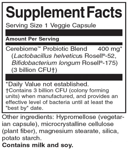 Пробиотикът Щастлива микробиома в подкрепа срещу стреса на Суонсън доставя Cerebiome, клинично проучена смес от два популярни пробиотични щама – Lactobacillus helveticus Rosell-52 и Bifidobacterium longum Rosell-175, които осигуряват подкрепа както за червата, така и за мозъка. Cerebiom е това, което се нарича психобиотик - пробиотик, който помага на тялото да произвежда серотонин и други невротрансмитери, за да поддържа психичното здраве. Той е широко изследван за потенциала му да облекчава физическите и психологическите последици от стреса, както и да насърчава храносмилателното здраве и комфорта.
