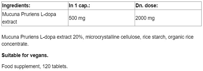 Mucuna Pruriens Extract 500 mg / 120 Tabs