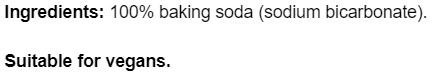 Съставки:100% сода за хляб (натриев бикарбонат)