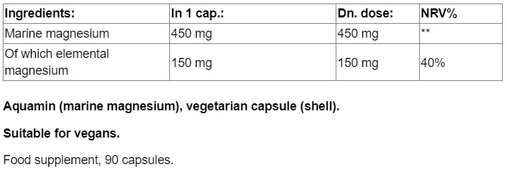 Аквамин магнезият е извлечен от богата на минерали морска вода и има изцяло растителен и органичен произход. Съдържа магнезиев хидроксид, а тази форма на магнезия се абсорбира директно в тялото.