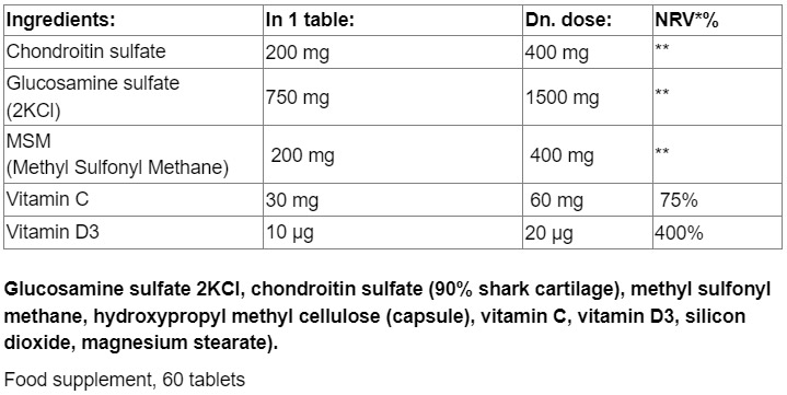 Glucosamine, Chondroitin & MSM / 60 Tabs