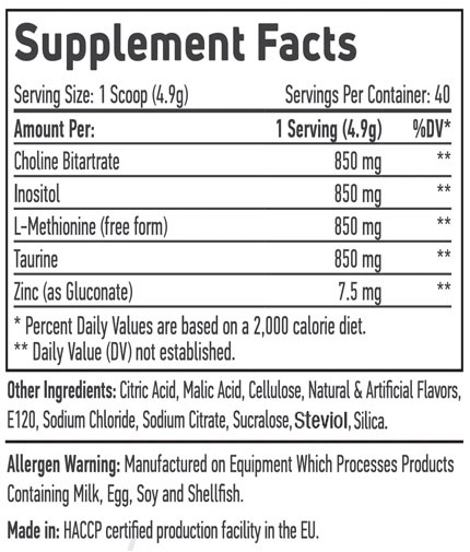 Съставки:Холин, Инозитол, Метионит, Таурин