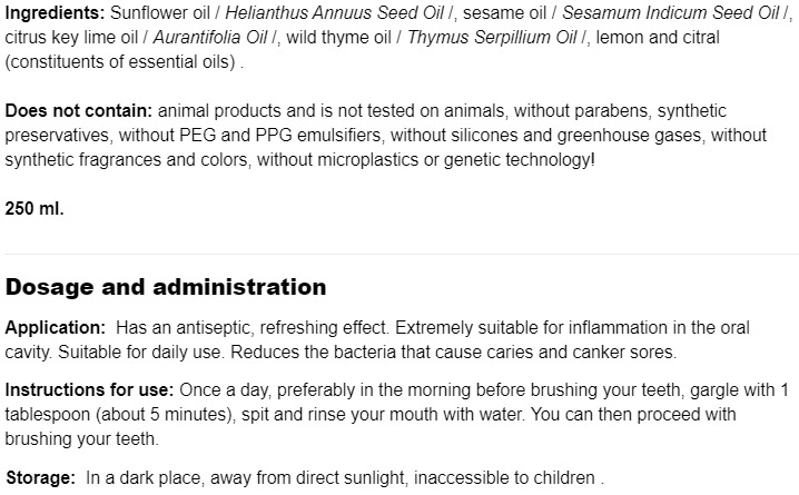Mouth Pulling Oil - Lime and Thyme / 250 ml