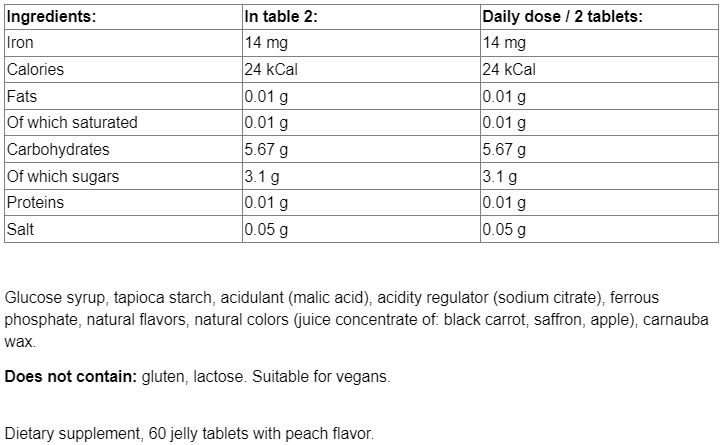 Iron Soft Gums / Peach Flavored / 60 Gummies