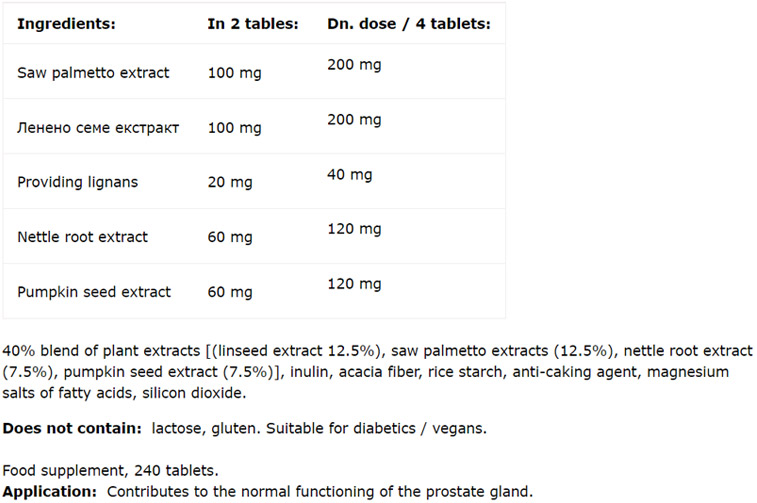 Healthy Prostate with Pumpkin Seeds and Saw Palmetto / 240 Tabs