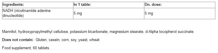 Съставки: NADH