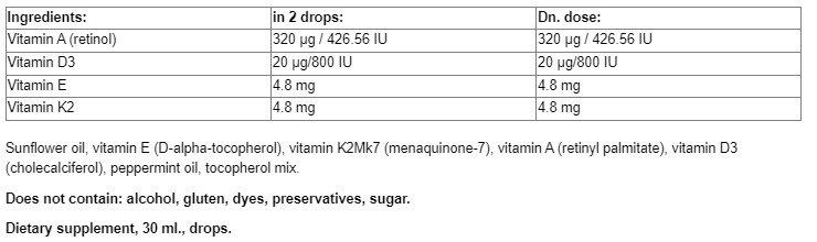 Vitamins A + D3 + E + K2 (Mk7) / 30 ml