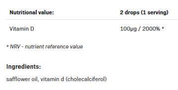 Съставки: витамин D3 (4000 IU на дневна доза), масло от MCT