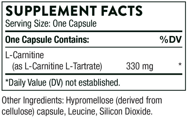 L-Carnitine от Thorne осигурява L-карнитин L-тартрат, който участва в транспорта на мастни киселини до митохондриите, където се изгарят за енергия. Това подпомага повишаването на енергийните нива, намалява умората и подкрепя оптималната физическа издръжливост. Формулата е без глутен и подходяща за хора с високи енергийни потребности.