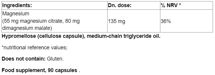 Съставки: Магнезий (цитрат и димагнезиев малат)