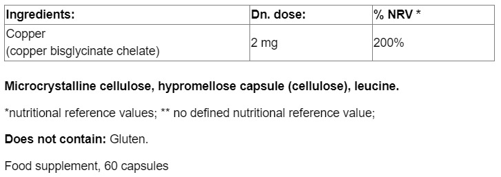 Съставки: Мед (бисглицинат хелат)