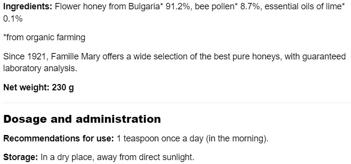 Коментари за FAMILLE MARY Wellbeing Elixir Pollinel Bio / 230 g