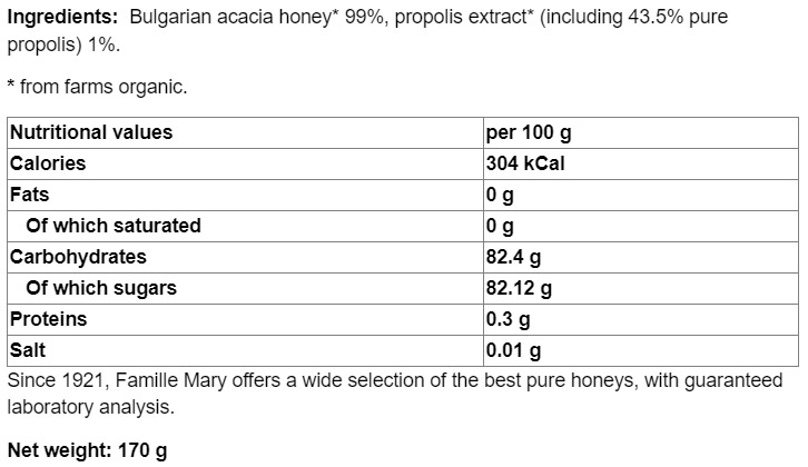 FAMILLE MARY Organic Honey & Propolis / 170 g