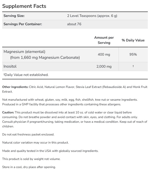 Свойства и предимства на Magnesium Inositol Relax Powder от NOW: