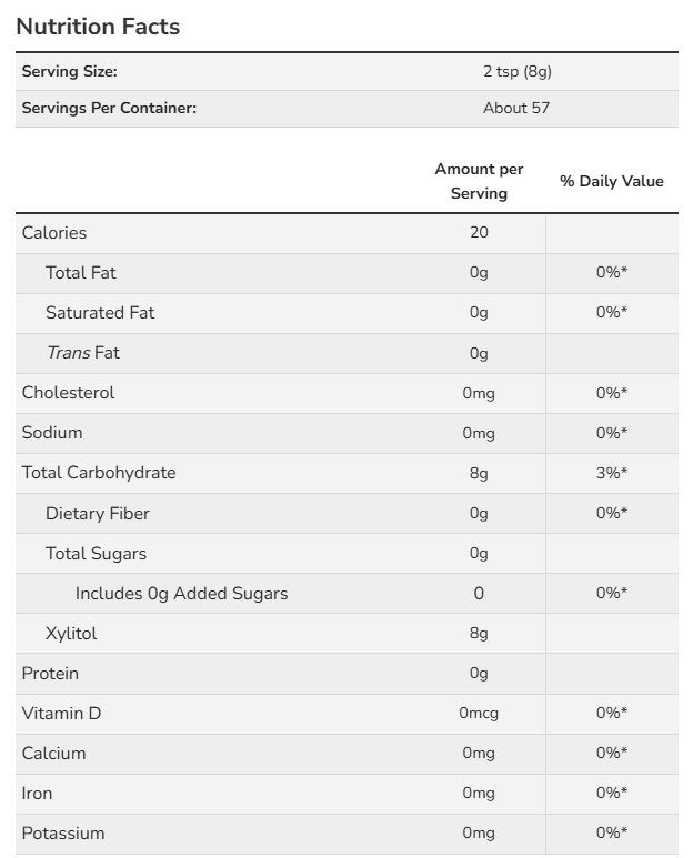 Xylitol от NOW съдържа само една активна съставка – ксилитол, който е естествено срещан в някои плодове и зеленчуци. Той осигурява сладък вкус, без рязко повишаване на кръвната захар. Не причинява кариеси и е предпочитан подсладител в дъвки, пасти за зъби и храни за диабетици. Може да се използва вместо захар в кафе, чай, смутита и различни рецепти.