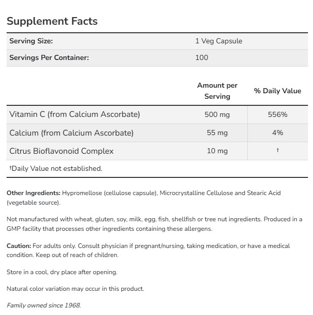 Vitamin C-500 Calcium Ascorbate-C от NOW съдържа витамин C под формата на калциев аскорбат – буферирана и по-нежна към стомаха форма. Той участва в защитата на клетките от оксидативен стрес и подкрепя имунния отговор. Калцият допринася за нормалната функция на ензимите и поддържа здрави кости и зъби. Цитрусовите биофлавоноиди засилват действието на витамин C и подпомагат кръвоносната система.