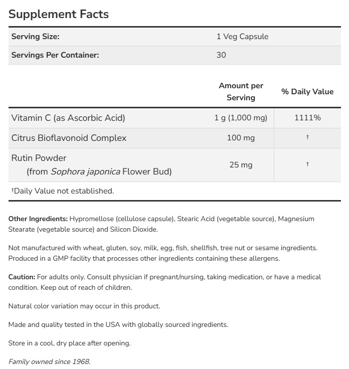 Комбинира витамин C с биофлавоноиди за по-добра ефективност
