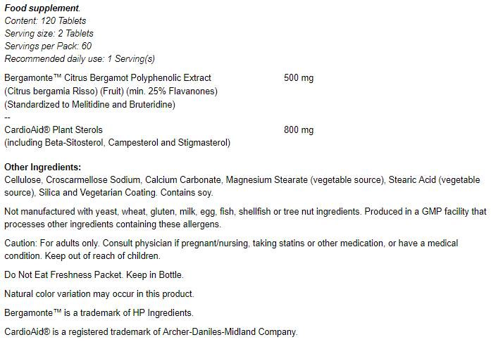 Бергамотът е цитрусов плод, богат на полифеноли, които имат благоприятно действие върху липидния баланс и могат да подпомогнат понижаването на нивата на „лошия“ холестерол (LDL). Включените растителни стероли играят важна роля в регулирането на холестерола, като възпрепятстват неговото усвояване в червата, което може да допринесе за подобрен липиден профил. Тази комбинация прави Cholesterol Pro отличен избор за всеки, който иска да подкрепи сърдечното си здраве по естествен начин.