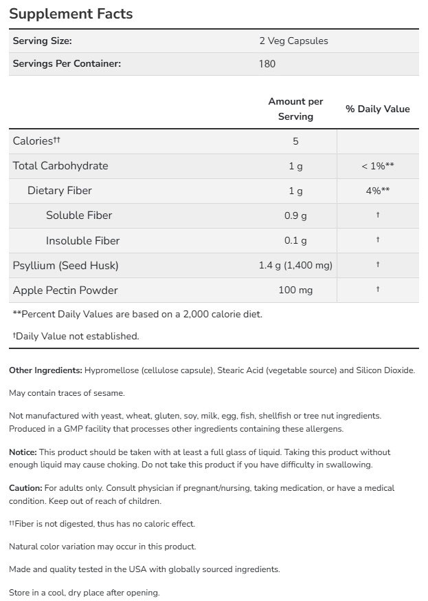 Съставки: Люспи от псилиум (Psyllium Seed Husk), ябълков пектин