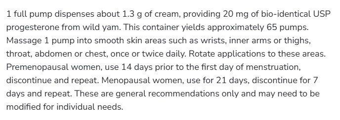 1 пълна доза от помпата доставя приблизително 1.3 g крем, съдържащ 20 mg прогестерон, извлечен от див ям.