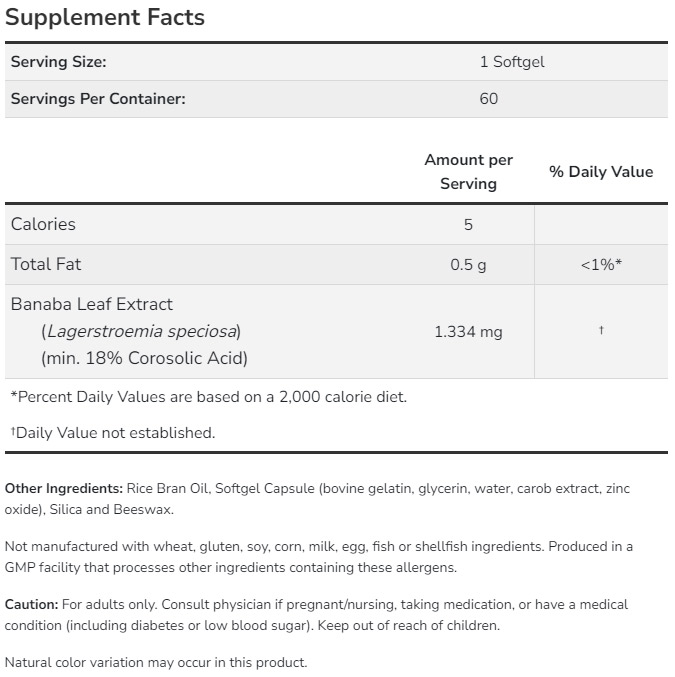 Съставки: Екстракт от листа на банаба (Banaba Leaf Extract).