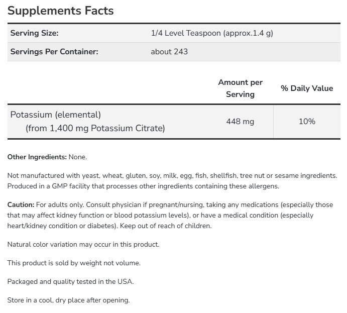Свойства и предимства на Potassium Citrate Powder от NOW: