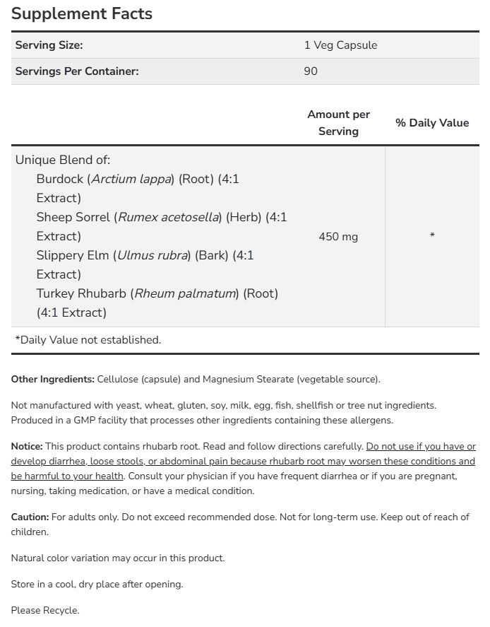 Съставки: Екстракт от корен на репей, билка киселец, кора от червен бряст, корен от ревен (4:1 екстракти)