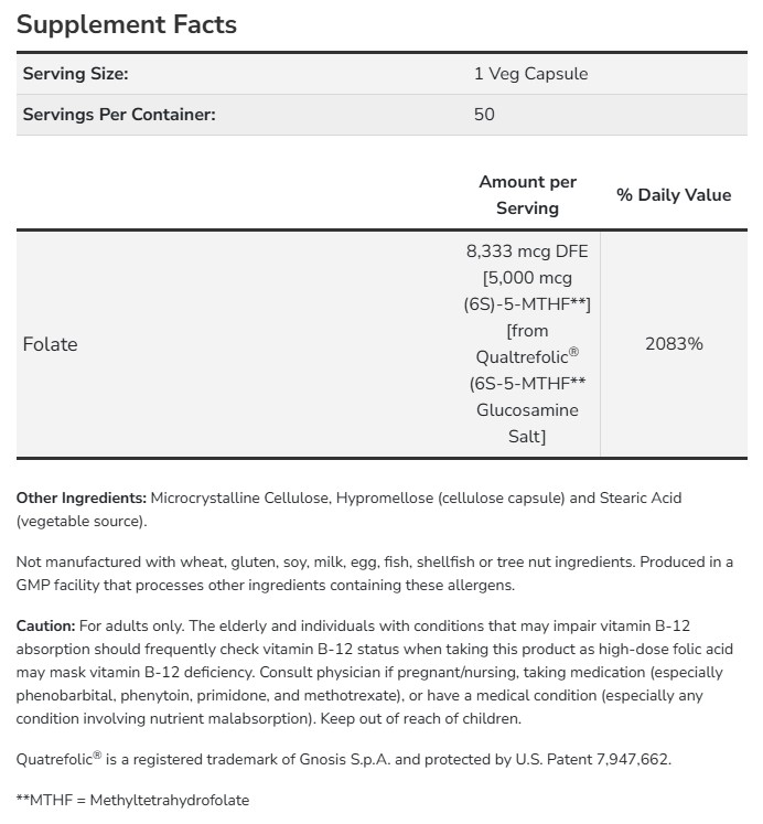 Метилфолатът е готова за употреба форма на фолиева киселина, която се използва директно от тялото. Подходящ е за хора, които не усвояват добре обикновената фолиева киселина. Подпомага образуването на червени кръвни клетки и е важен за здравето на мозъка, сърцето и бременните жени.