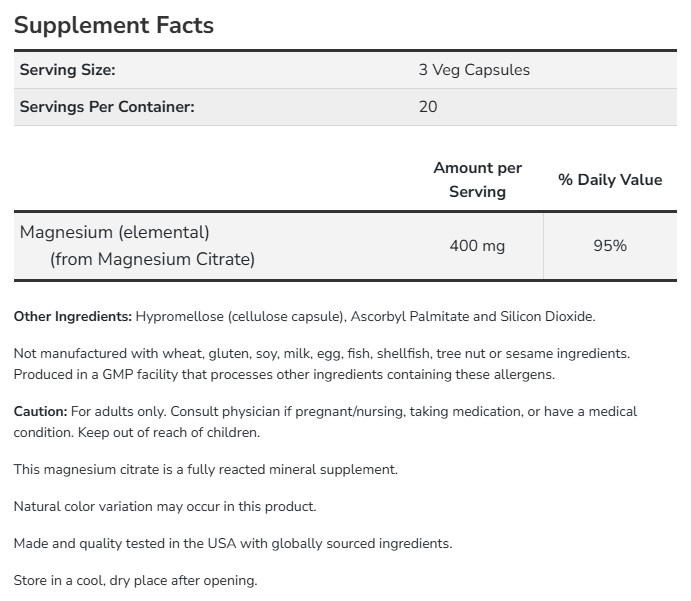 Magnesium Citrate 400 mg от NOW е минерална добавка, създадена за поддържане на мускулната функция, нервната система и енергийния метаболизъм.