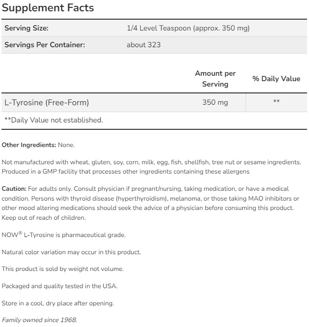 Свойства и предимства на L-Tyrosine Powder от NOW Foods: