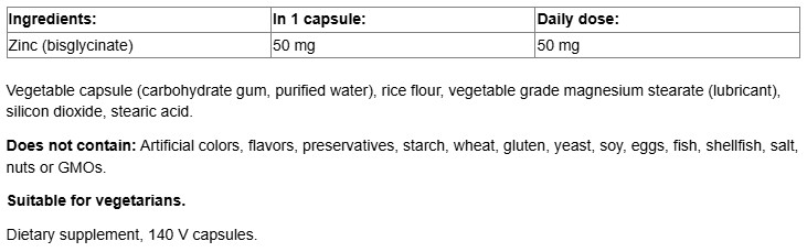 Zinc Bisglycinate 50 mg / 140 Vcaps