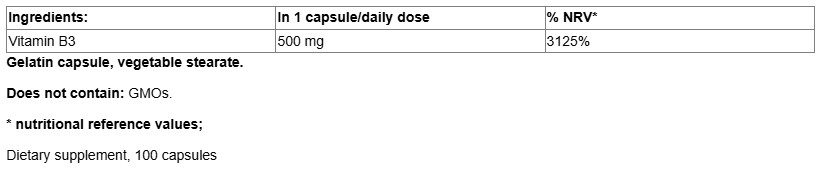 Vitamin B3 Niacin 500 mg / 100 Caps
