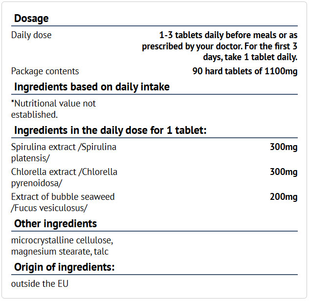 Съставки: Екстракт от Спирулина, Хлорела, Мехурчесто водорасло
