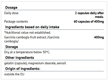 Съставки: Екстракт от Камбоджанска гарциния (плодове)