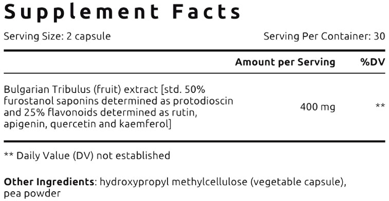 Екстрактът от български трибулус е стандартизиран до 50 % фуростанолови сапонини (протодиосцин), които подпомагат синтеза на тестостерон и повишават либидото и спортната производителност. Флавоноидите (рутин, апигенин, кверцетин, кемпферол) имат силно антиоксидантно и противовъзпалително действие, защитават клетките и поддържат здравината на кръвоносните съдове.